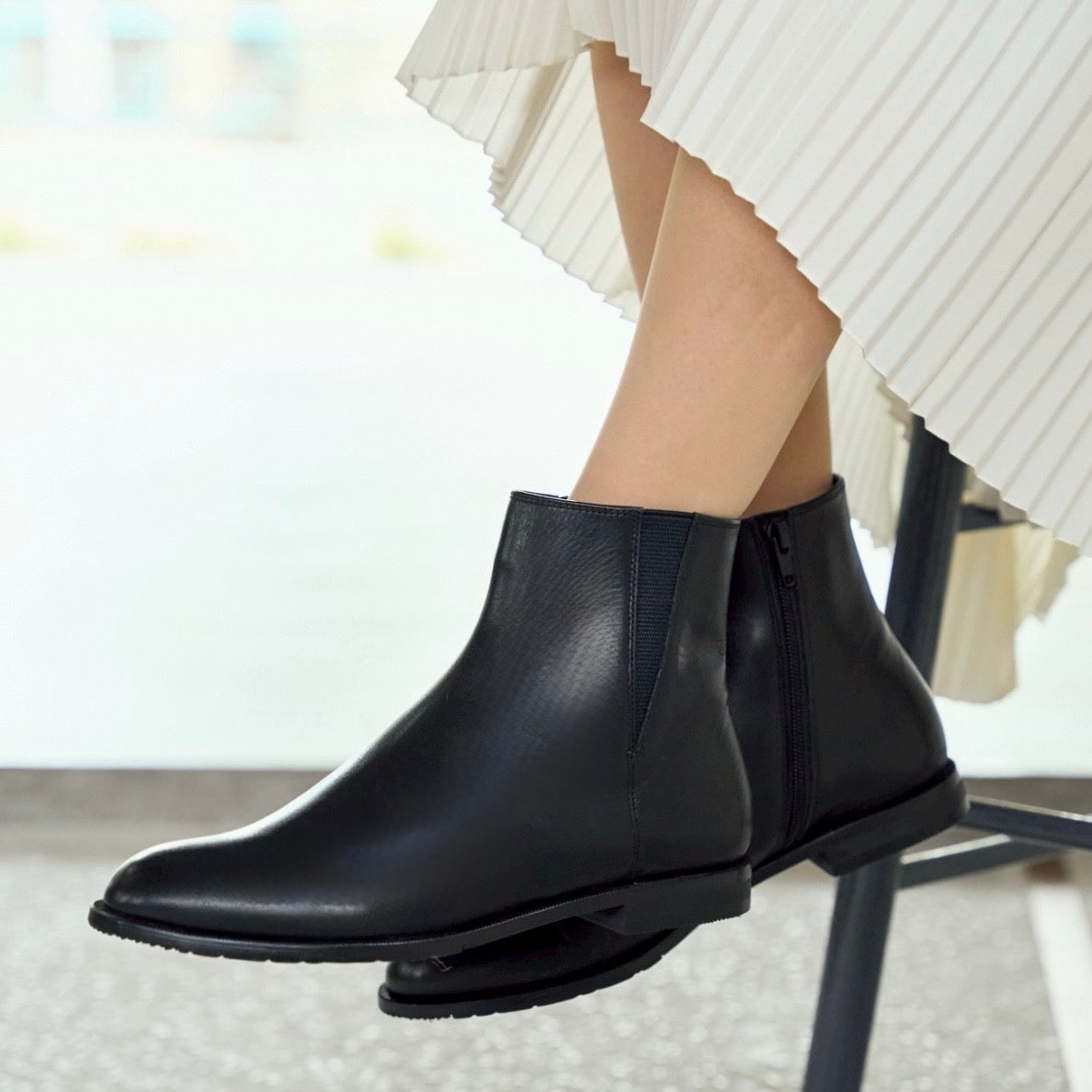 撥水レザーと滑りにくい雪底を使用したサイドゴアブーツ。甲裏にはクッションが内蔵されていてソフトな履き心地です。Vカットのサイドゴアとすっきりしたシルエットで大人の印象に。BL-ブラックDBR-ダークブラウンDGY-ダークグレー素材:撥水牛革ヒール高:2㎝筒丈:13㎝