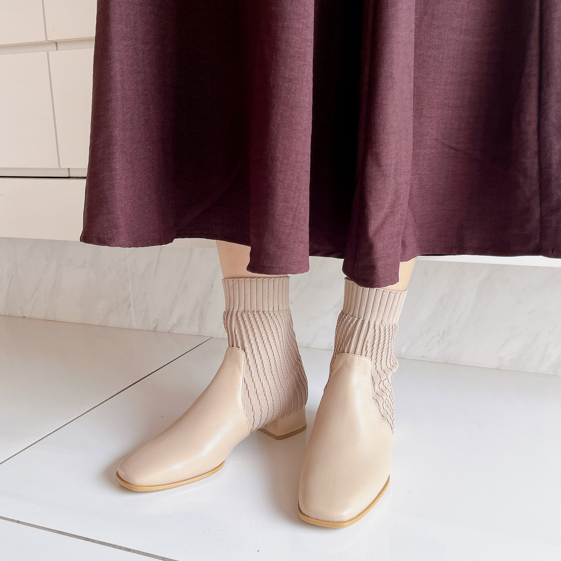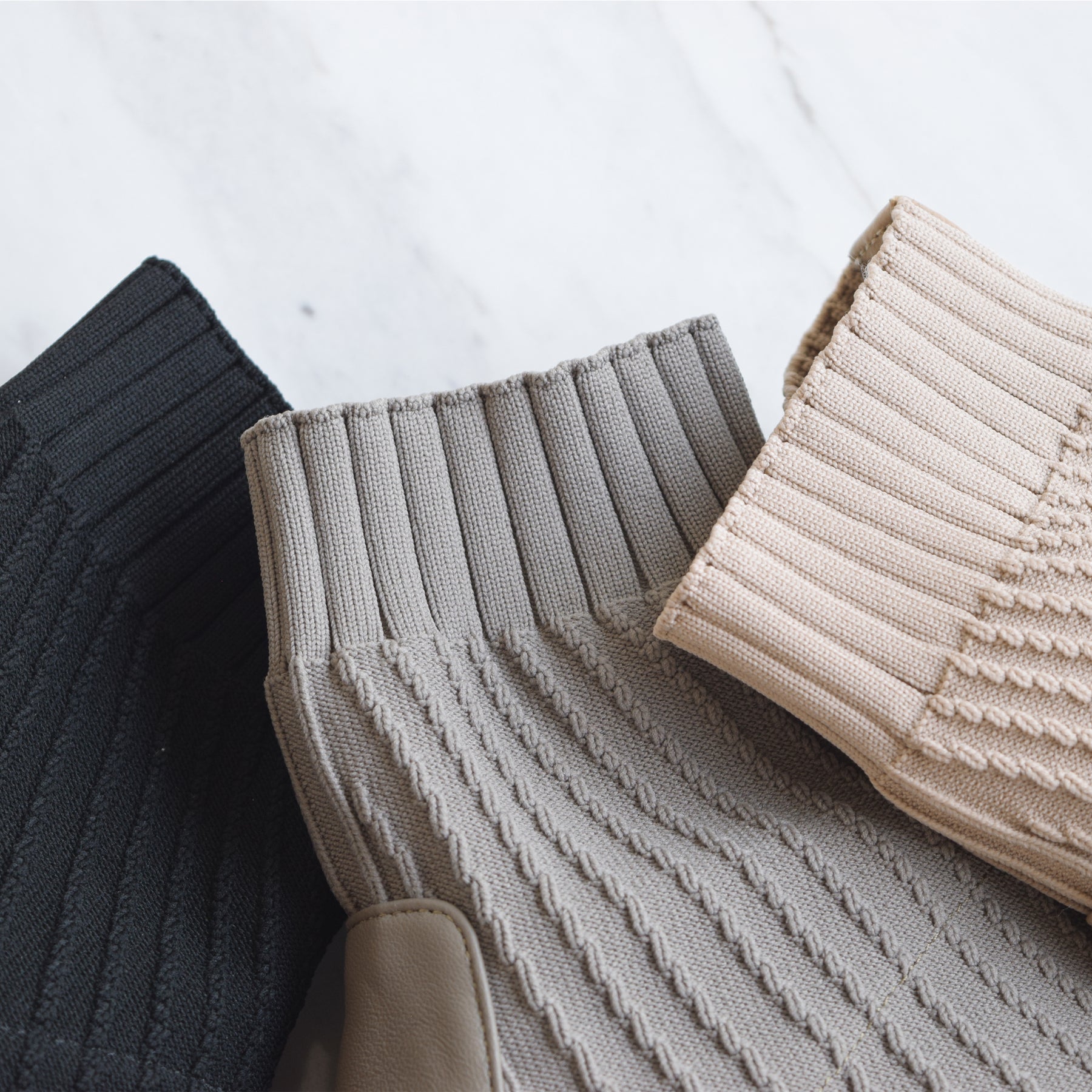 BL-ブラックGYU-グレージュBG-ベージュ素材ニット×羊革ヒール高:3.5㎝筒丈:16㎝