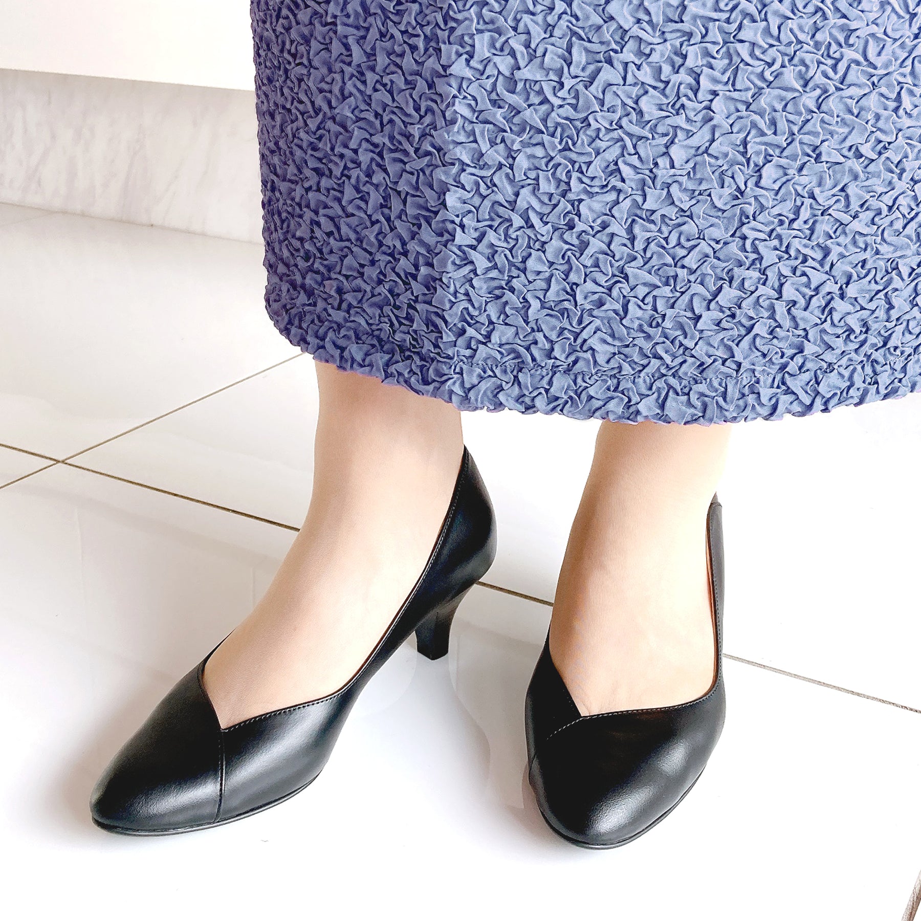 ななめVカットがポイントのデザインパンプス。程良い5.5cmヒールでおしゃれな通勤パンプスとしてもオススメです。OK-C-オークBL-C-ブラック素材:-C-牛革ヒール高:5.5㎝