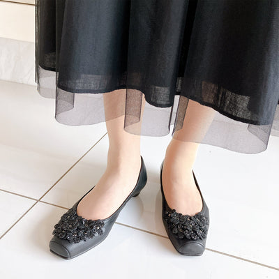 Vue フラワーモチーフスクエアパンプス 【VO12455】