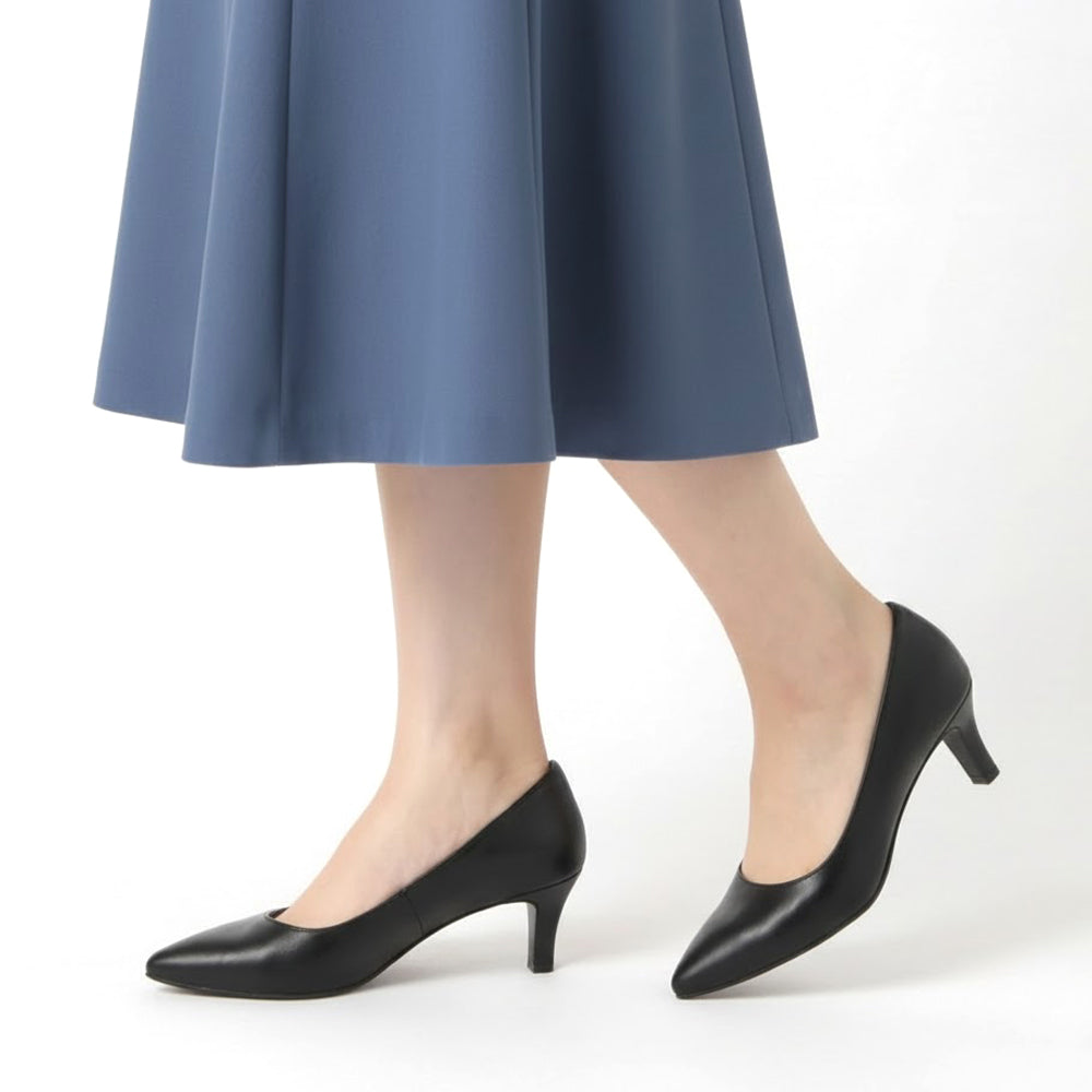 程良い4cmヒールのプレーンパンプス。