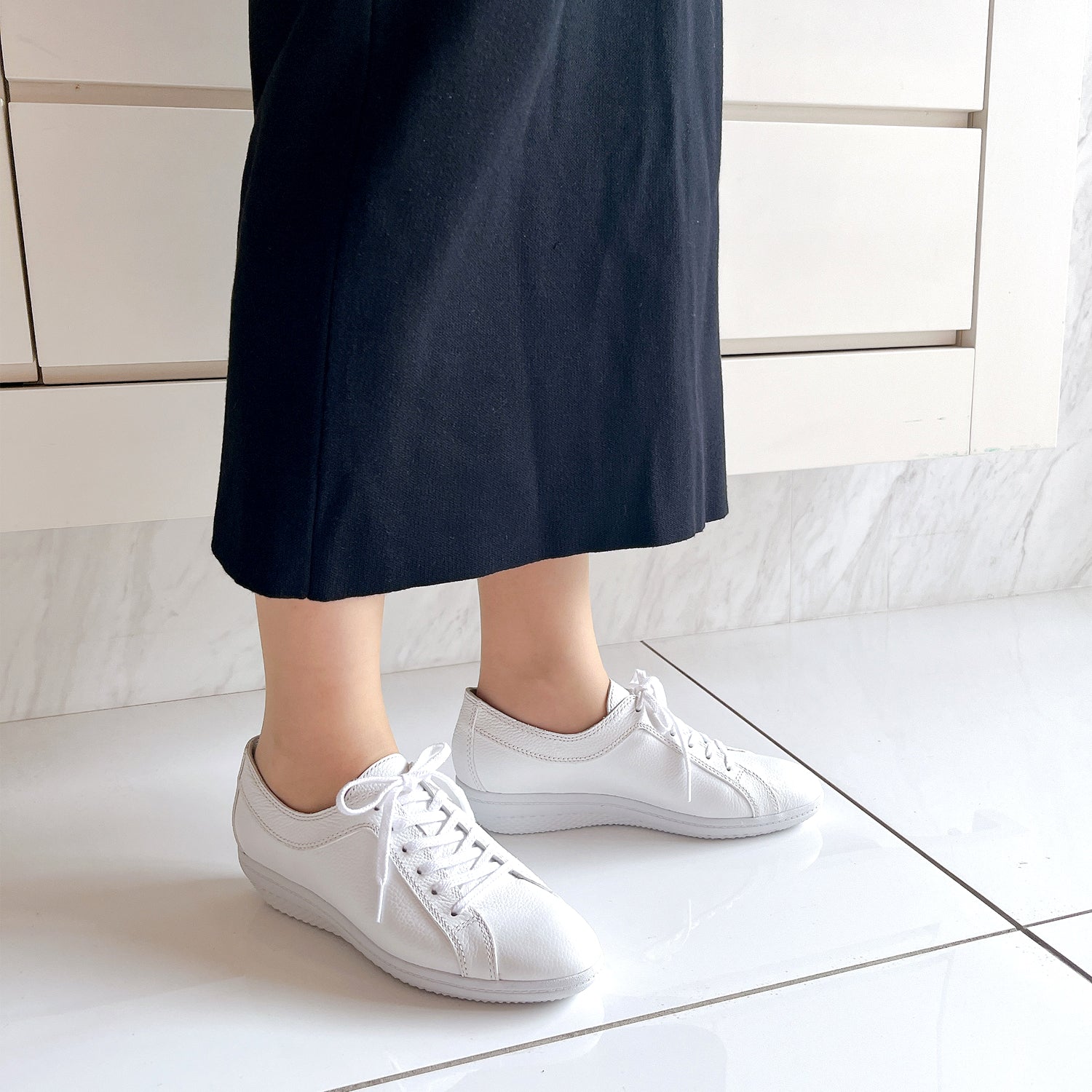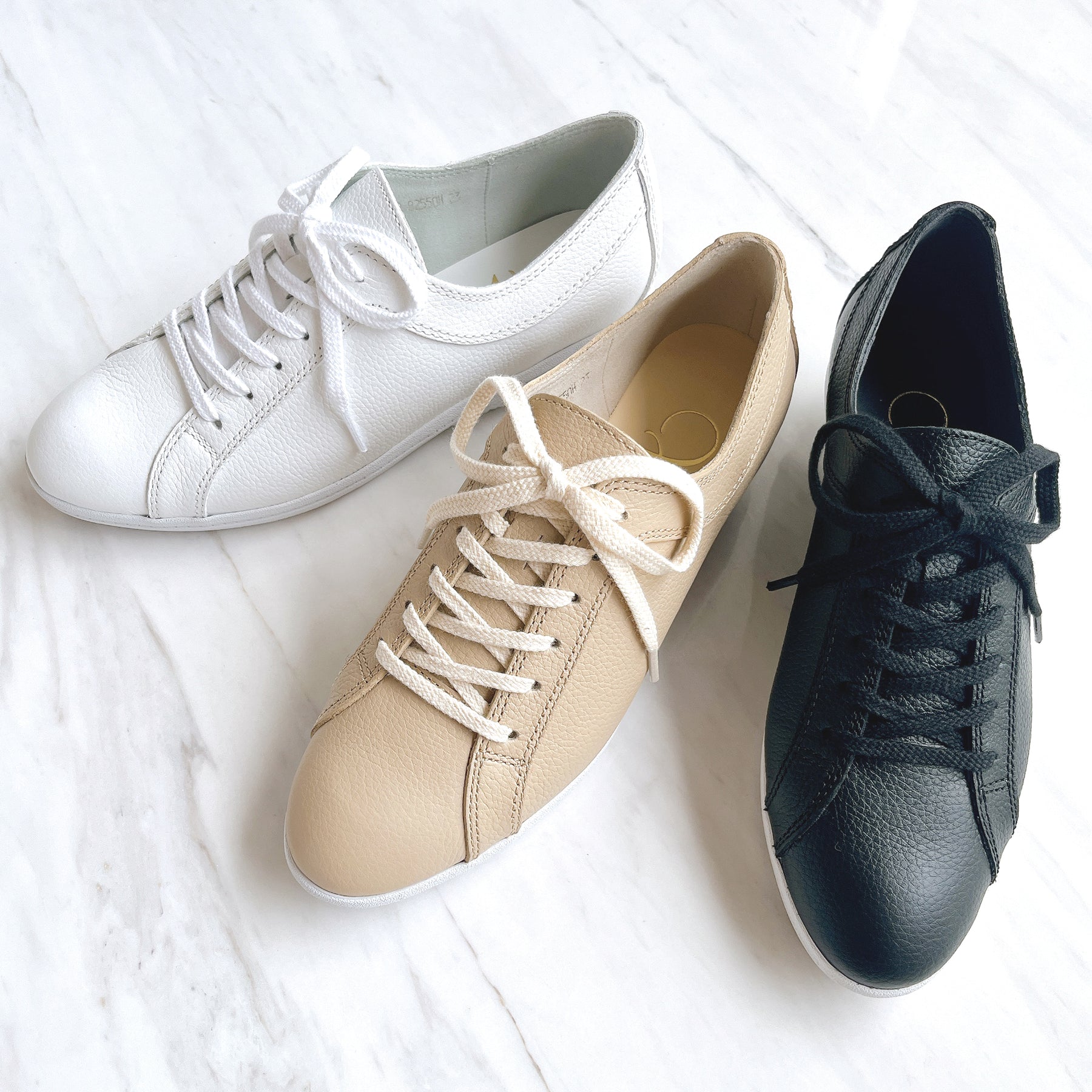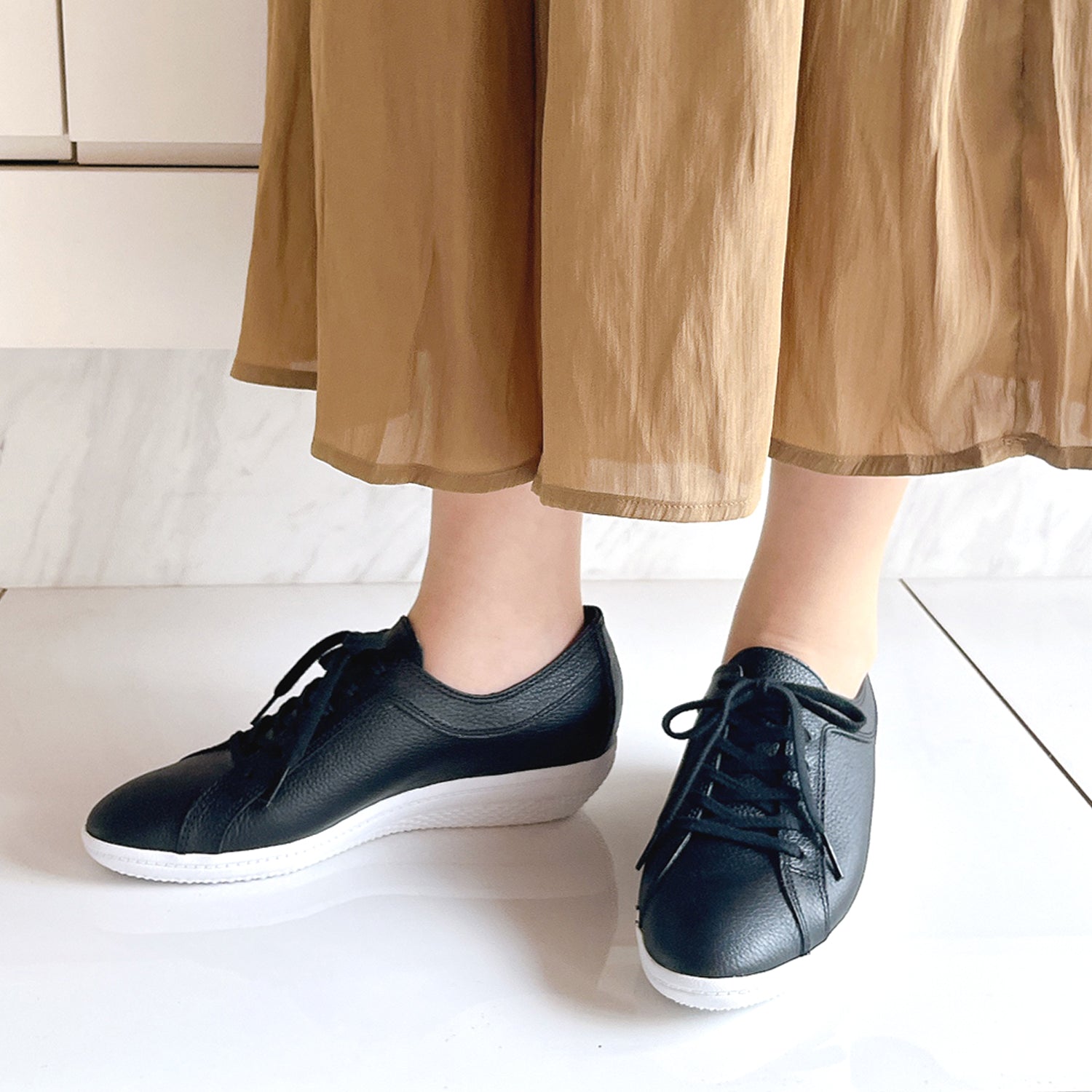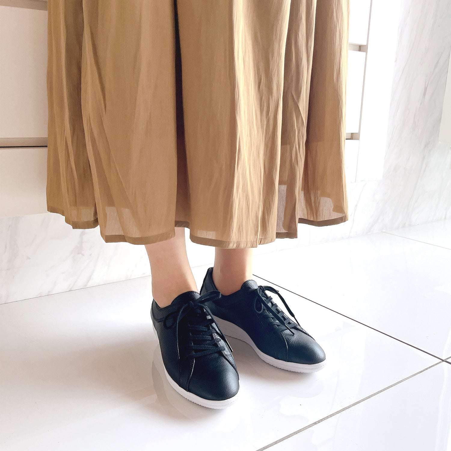 撥水・防汚加工のスコッチガードを使用したレザースニーカー。