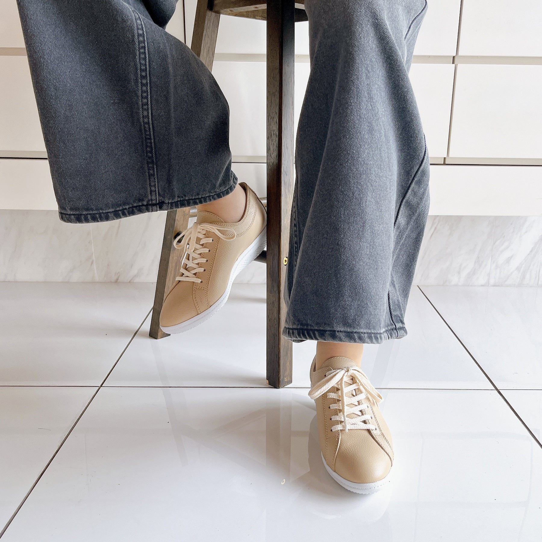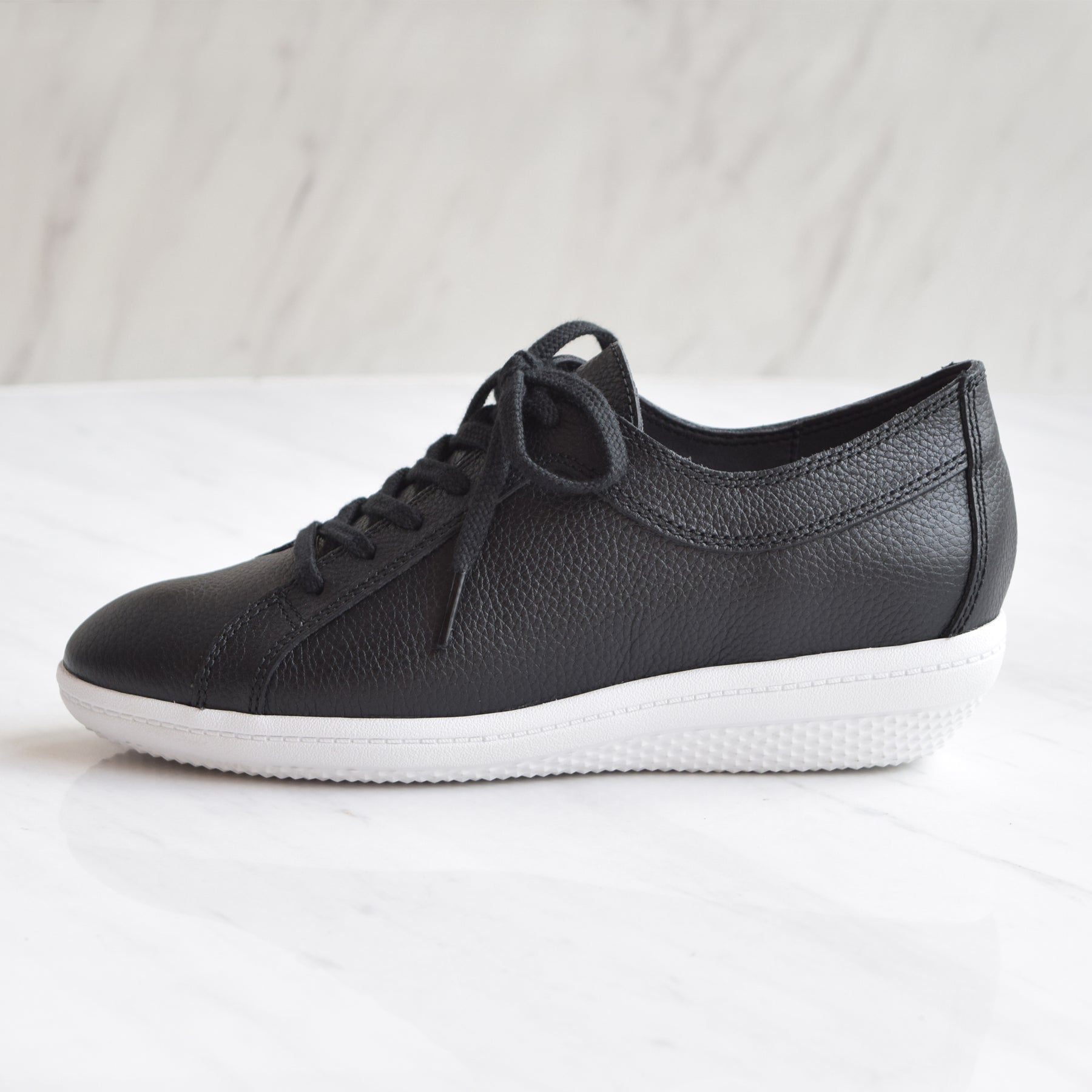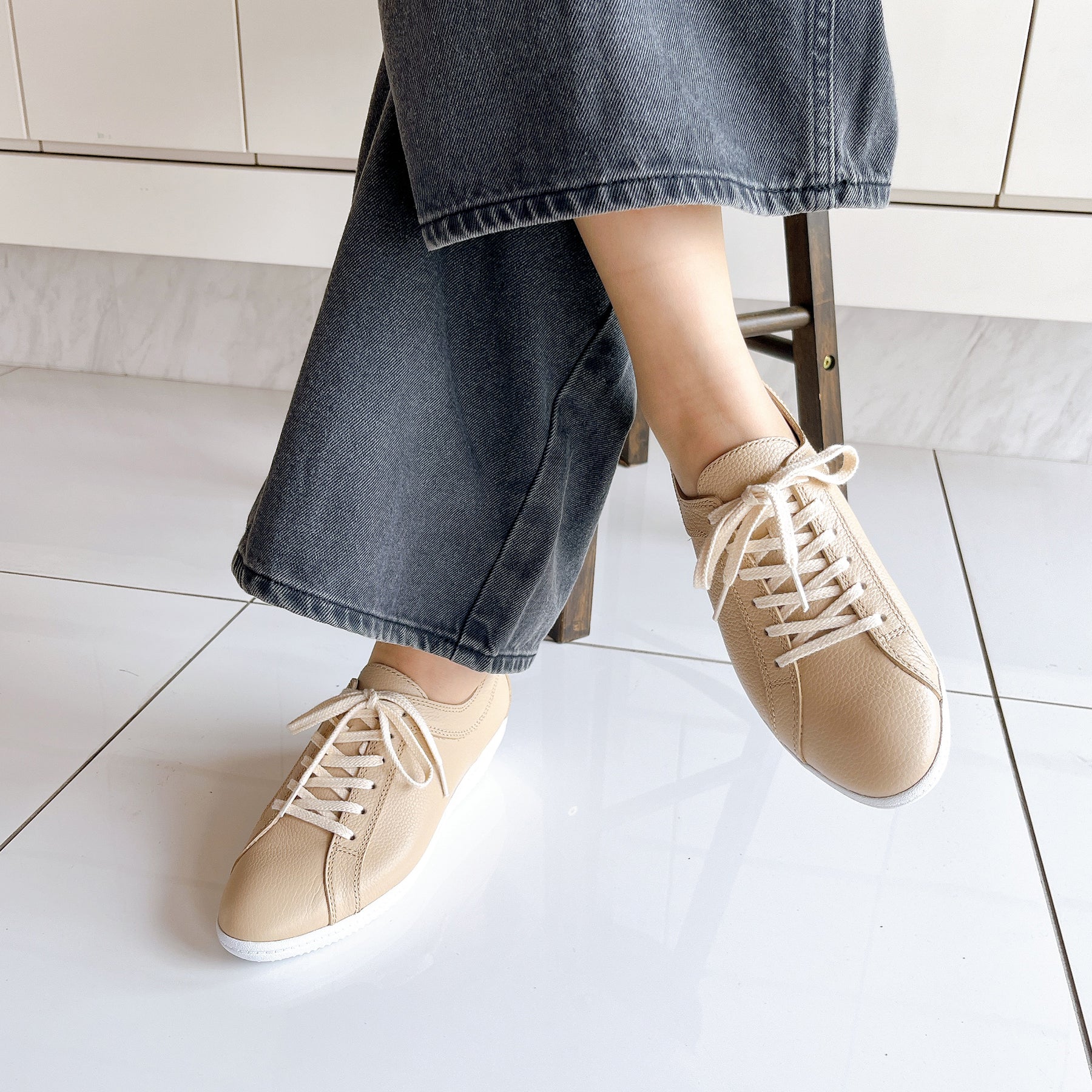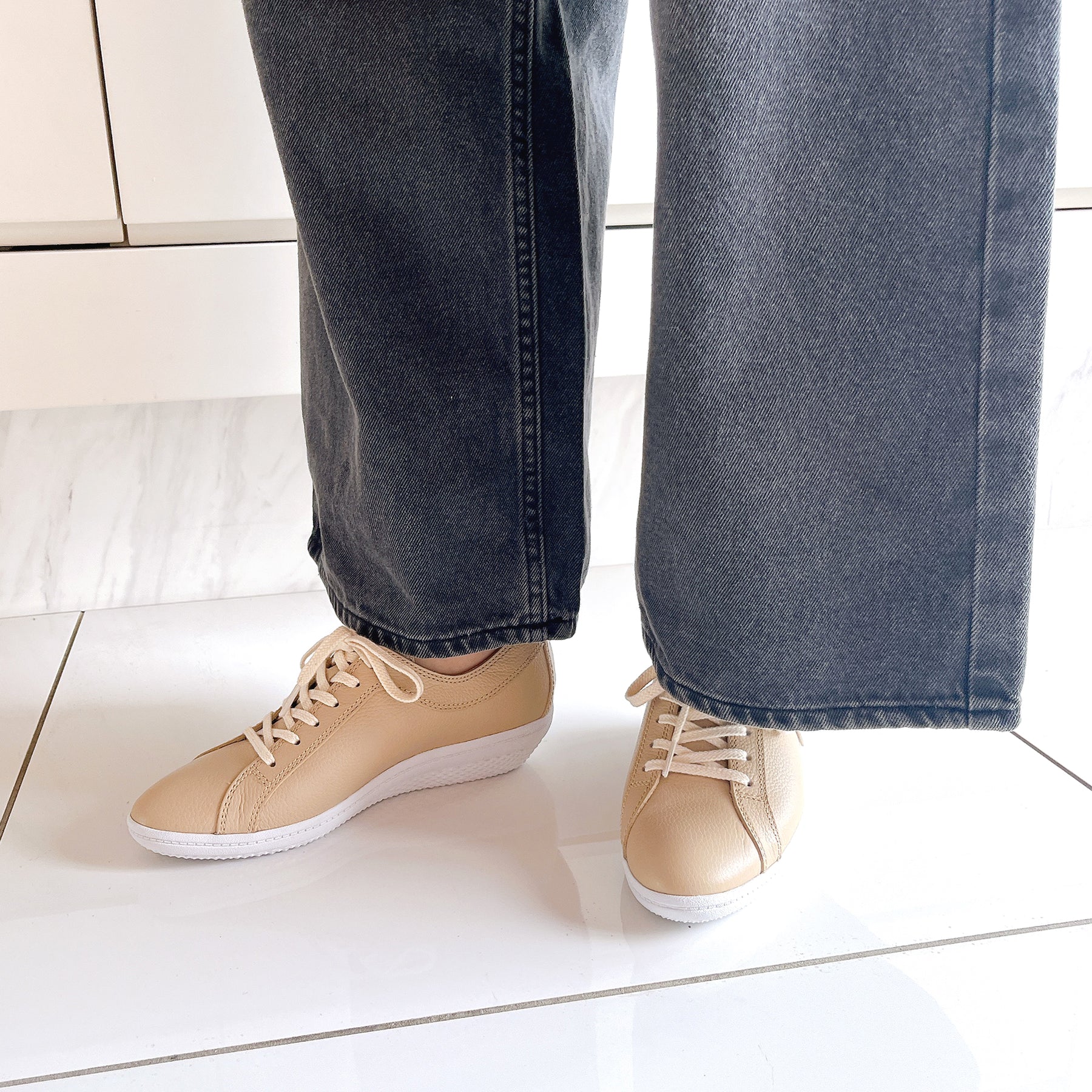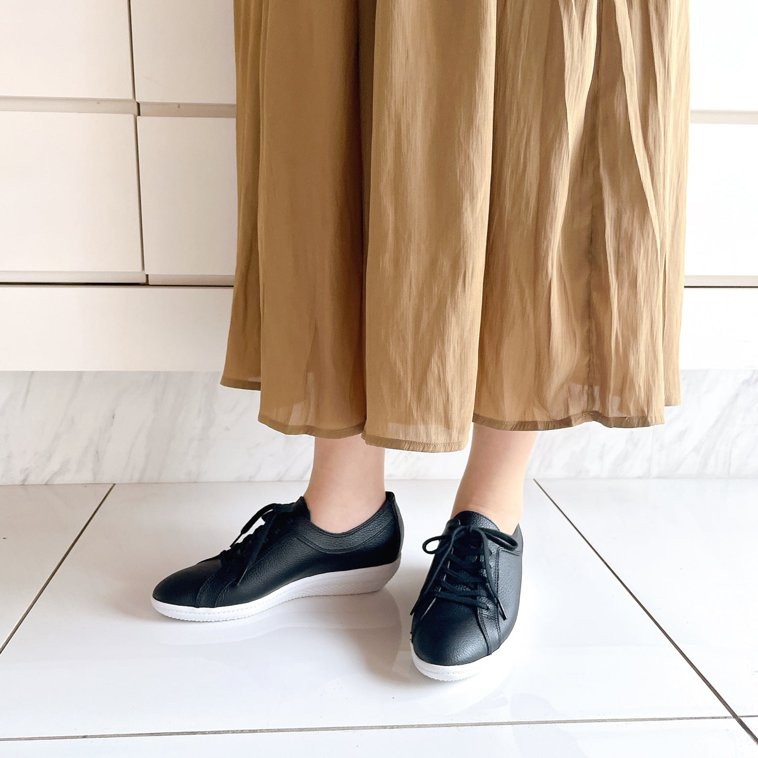 撥水・防汚加工のスコッチガードを使用したレザースニーカー。
