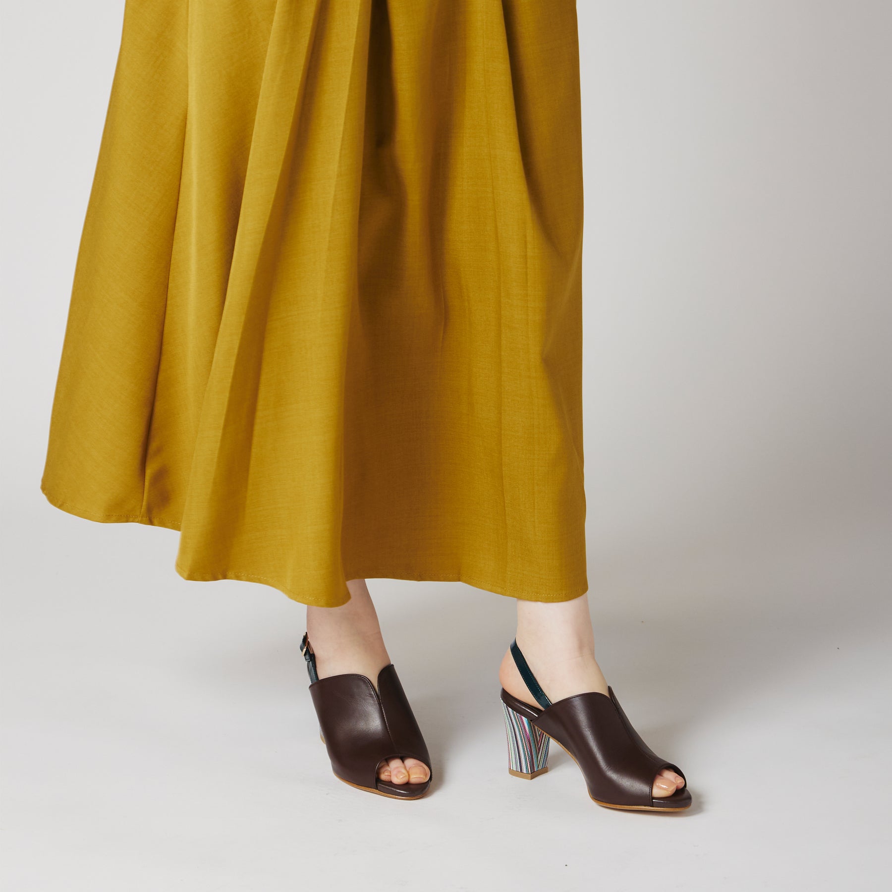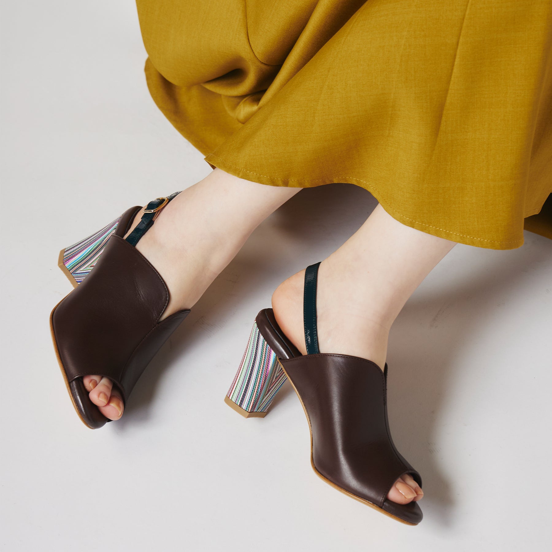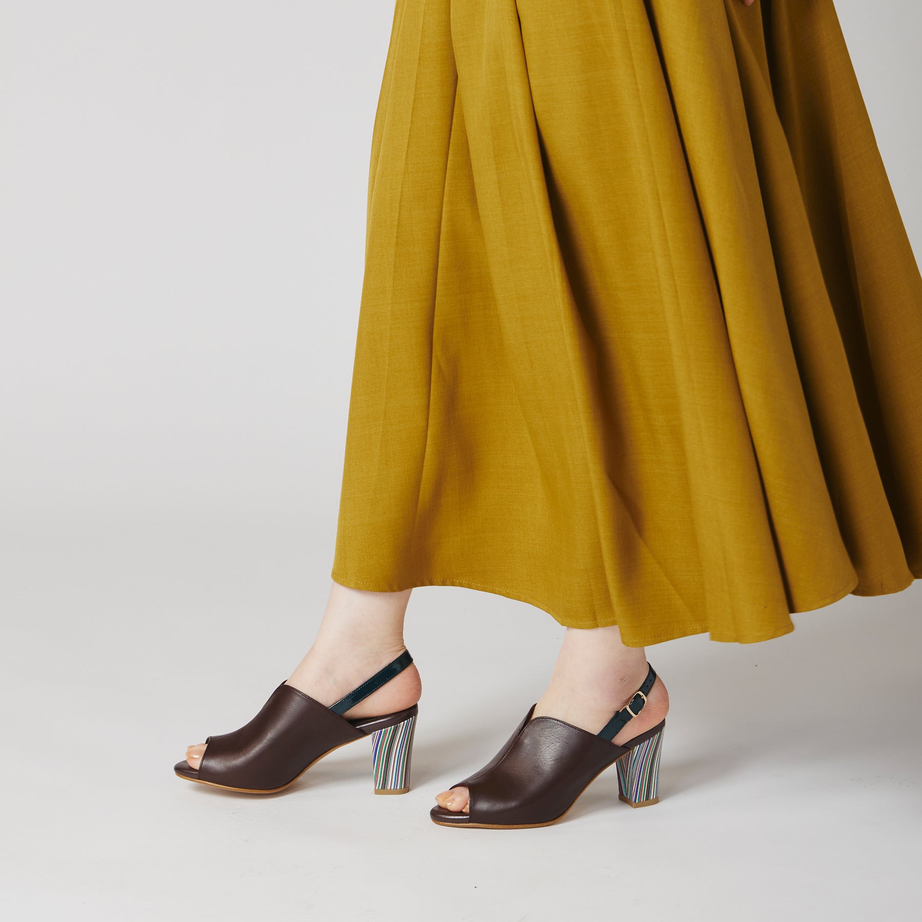 ストライプ柄のヒールがポイントのカバードサンダル。