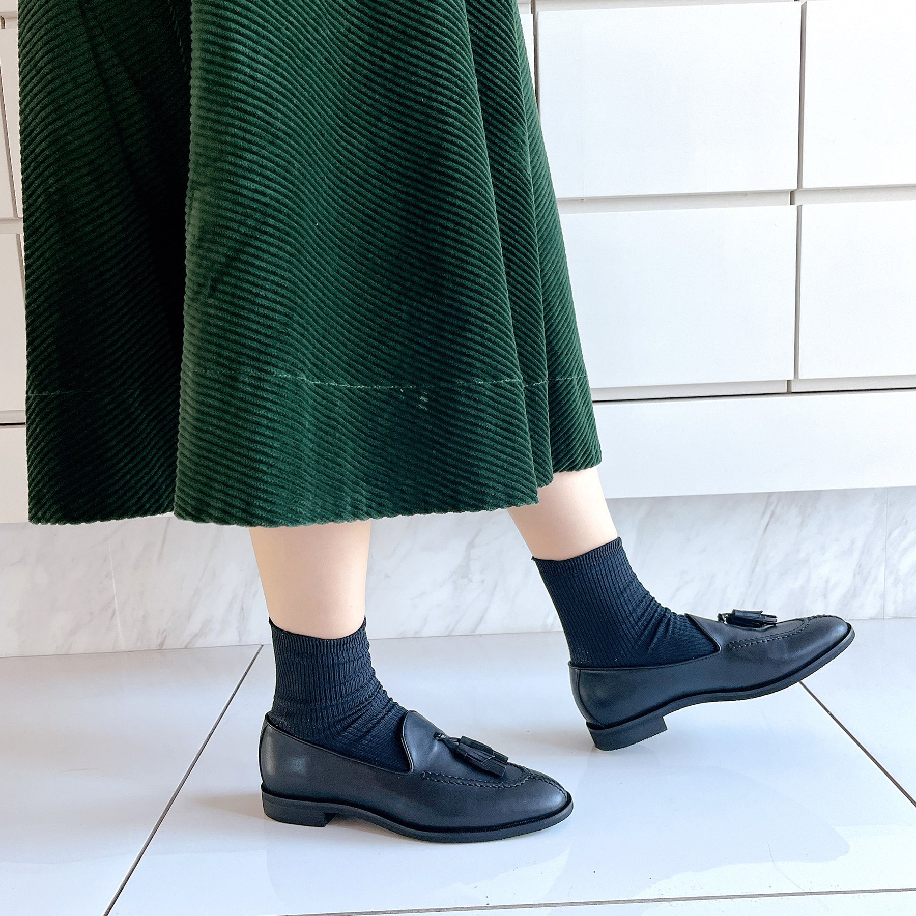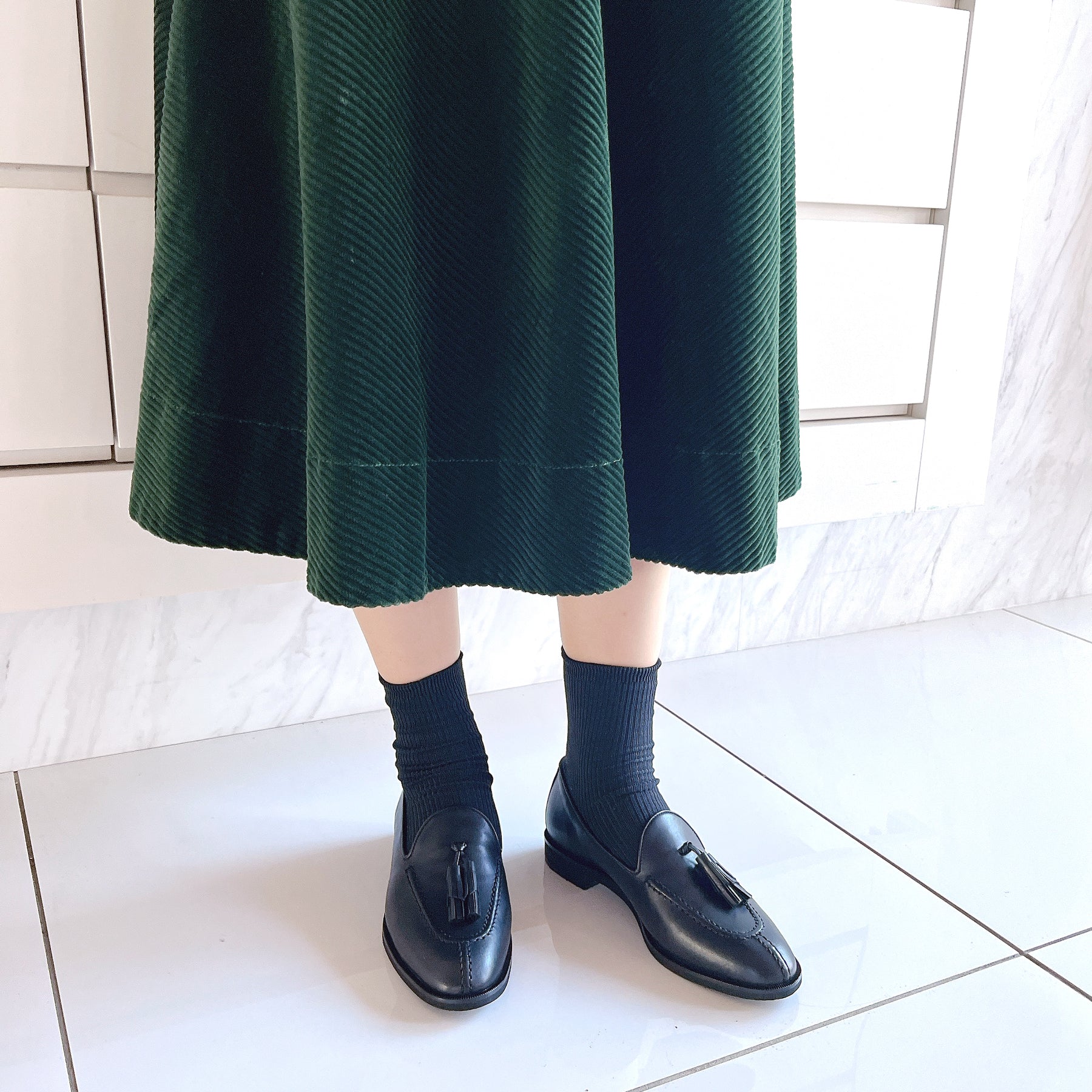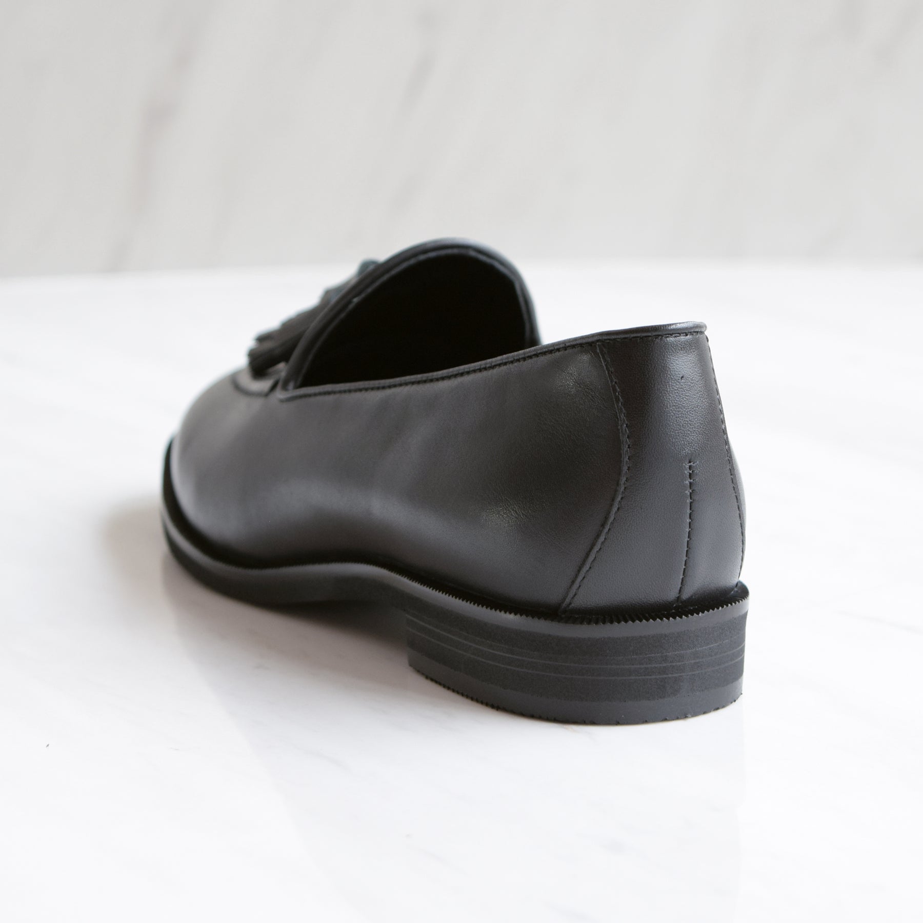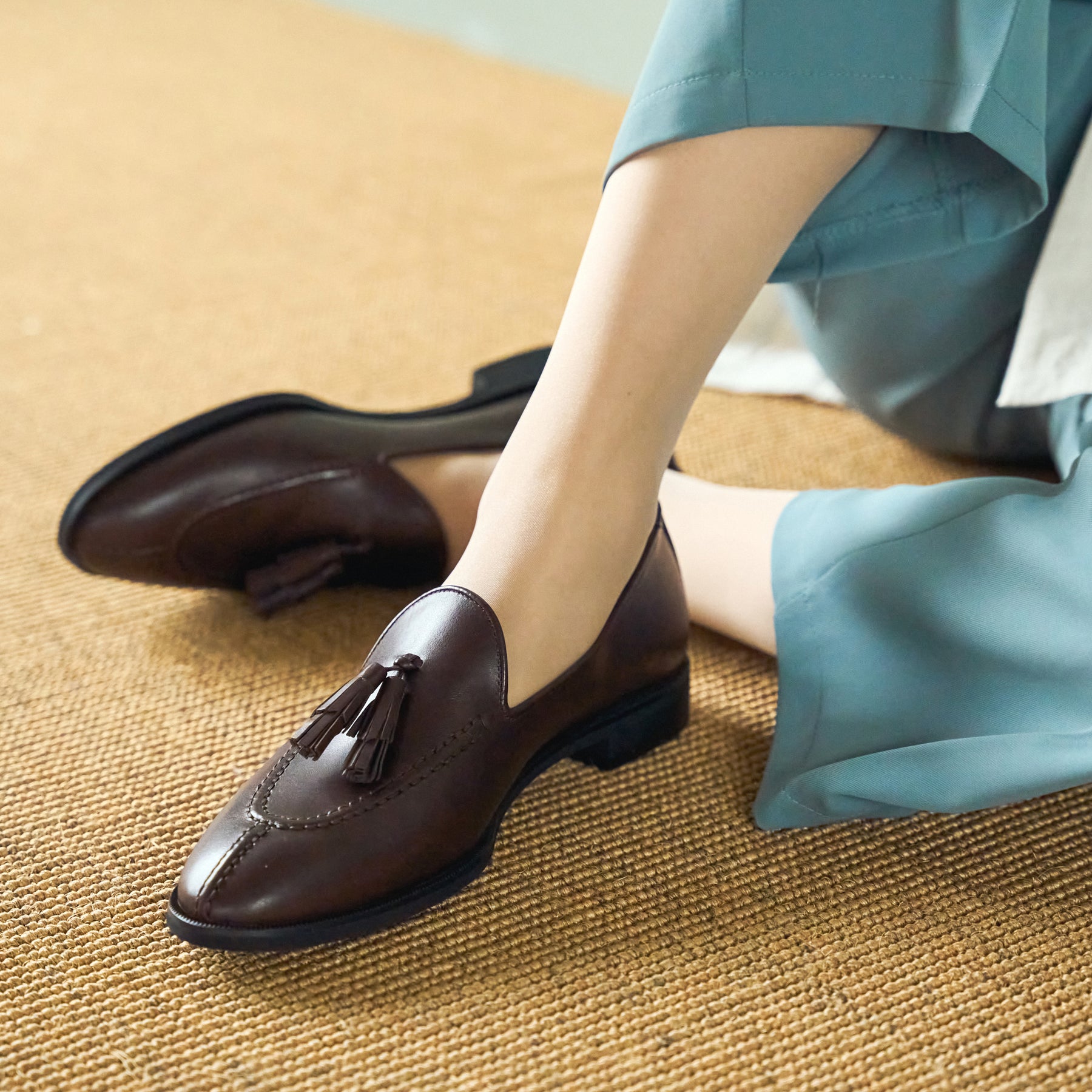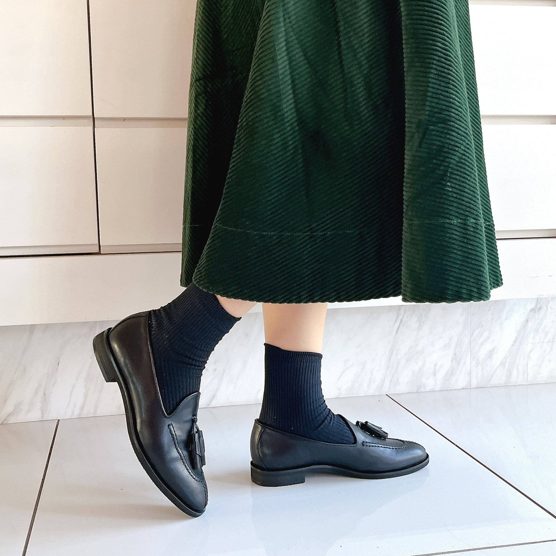 フットラップ製法を用いたタッセルローファー。革をつり込んだ後に前部の硬い中底を取り除く製法で、足を包み込むような履き心地と歩行時の返りの良さが特徴です。インソールと甲裏にもクッションを内蔵し、足あたりの快適さにもこだわりました。オンオフ兼用で使えて定番だけどアクセントになる一足です。BL-ブラックDBR-ダークブラウン素材:牛革ヒール高:2㎝