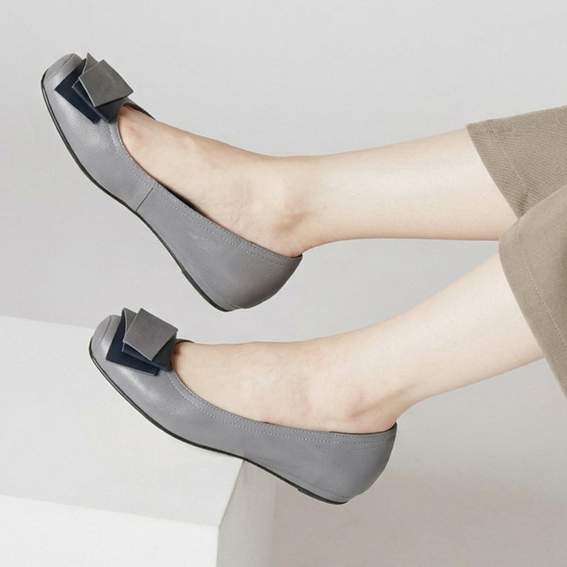 濃淡コンビのレザーモチーフが上品なアクセントに。